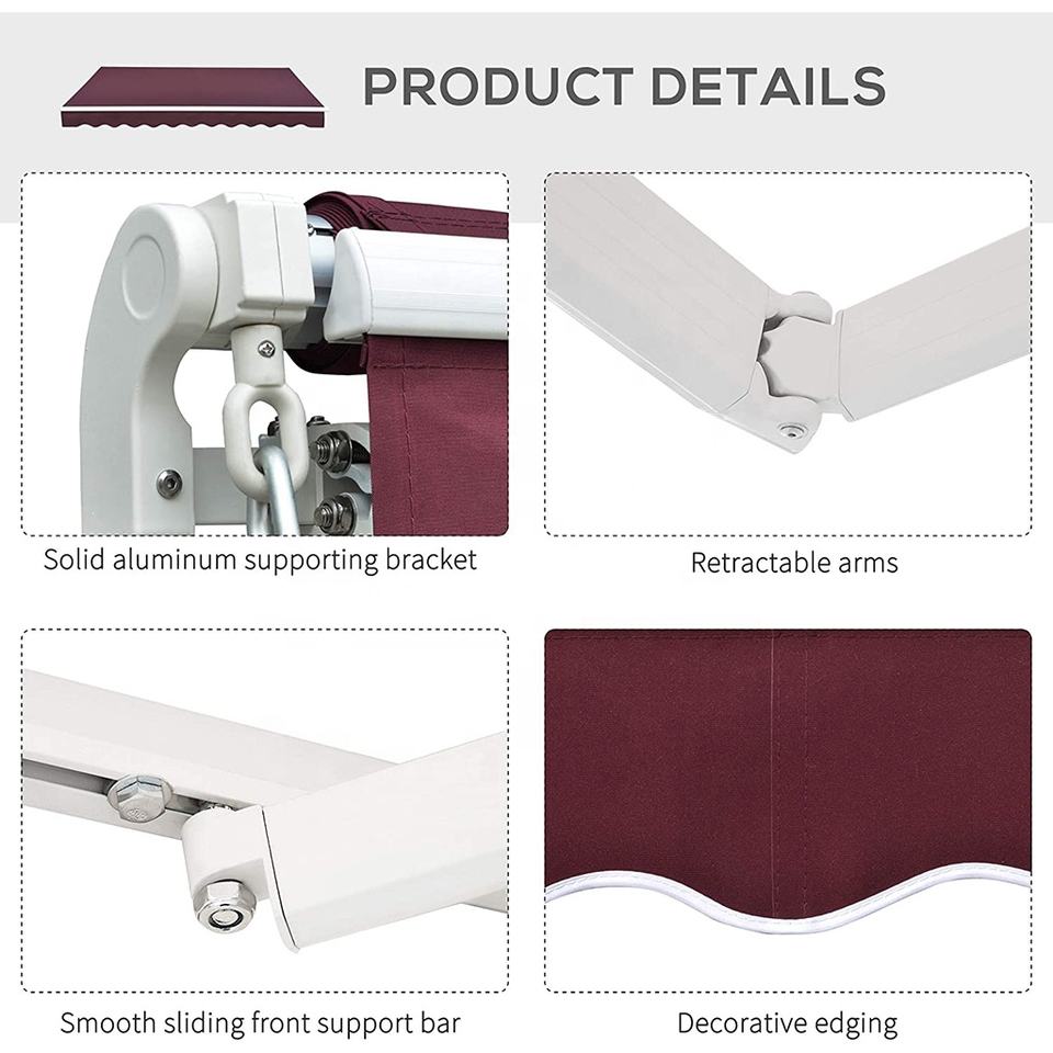 Main Product : Patio Awning,Outdoor Retractable Side Awning,Full Cassette Motorized Retractable Awning,Sun Shade Sail,Waterproof polyester sails,Shade Fabric Sails
